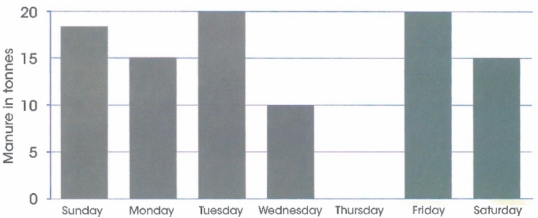 4) Each day, Tabansi the farmer dumps manure from his animals on the land next to the river. The bar chart shows how many tonnes he dumps each day in one week.
