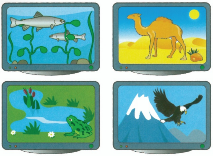 b: Say why the animal shown is suited to live in each habitat.