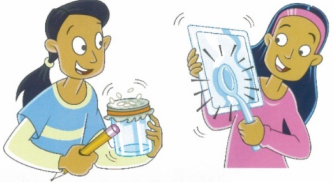 Hold the tin tray close to the jar and bang it with a spoon. What happens to the rice?