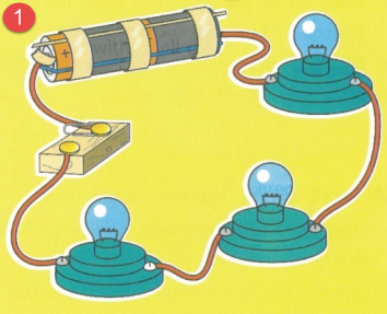 Use the scissors to cut the wire into short lengths. Complete your circuit using three bulbs in bulb holders as shown.