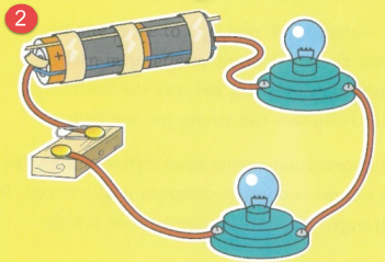 You will need: two cells - three bulbs in bulb holders - a switch - wire - a sharp knife - scissors - tape elastic band - a stick