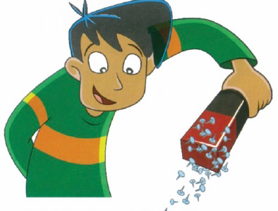 Pedro is helping his grandmother pick up pins. He is doing it the easy way - he is using a bar magnet.