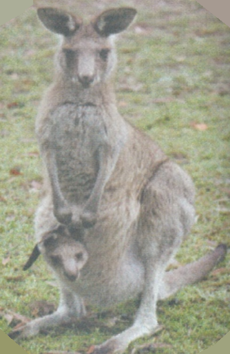 A baby kangaroo in its mother's pouch