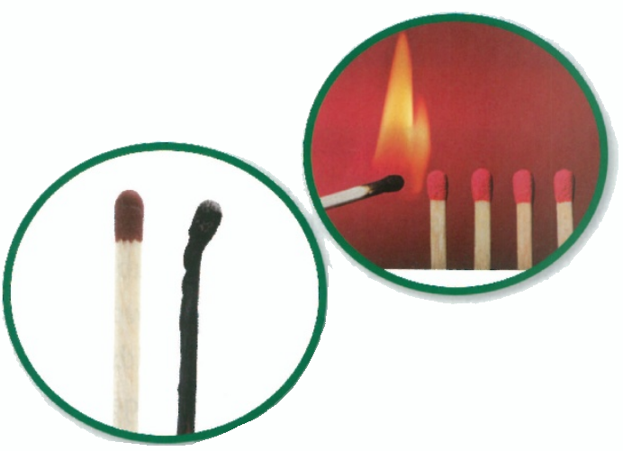 When some substances are heated, the changes cannot be reversed. We call these irreversible changes. Sometimes irreversible changes turn one substance into another substance. For example, when we burn a match the wood changes into a black substance called carbon.