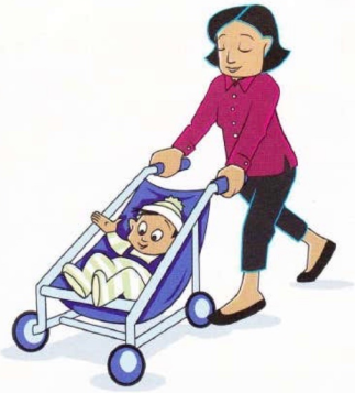 1) Is she pulling or pushing?