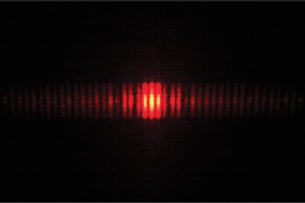 In order to observe interference, we need two sets of waves. The sources of the waves must be coherent–the phase difference between the waves emitted at the sources must remain constant. This also means that the waves must have the same wavelength. Today, this is readily achieved by passing a single beam of laser light through the two slits. A laser produces intense coherent light. As the light passes through the slits, it is diffracted so that it spreads out into the space beyond (Figure 13.20). Now we have two overlapping sets of waves, and the pattern of fringes on the screen shows us the result of their interference (Figure 13.21).