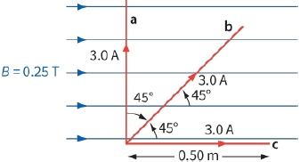 Figure 24.21: Three currents in a magnetic field. For Question 12